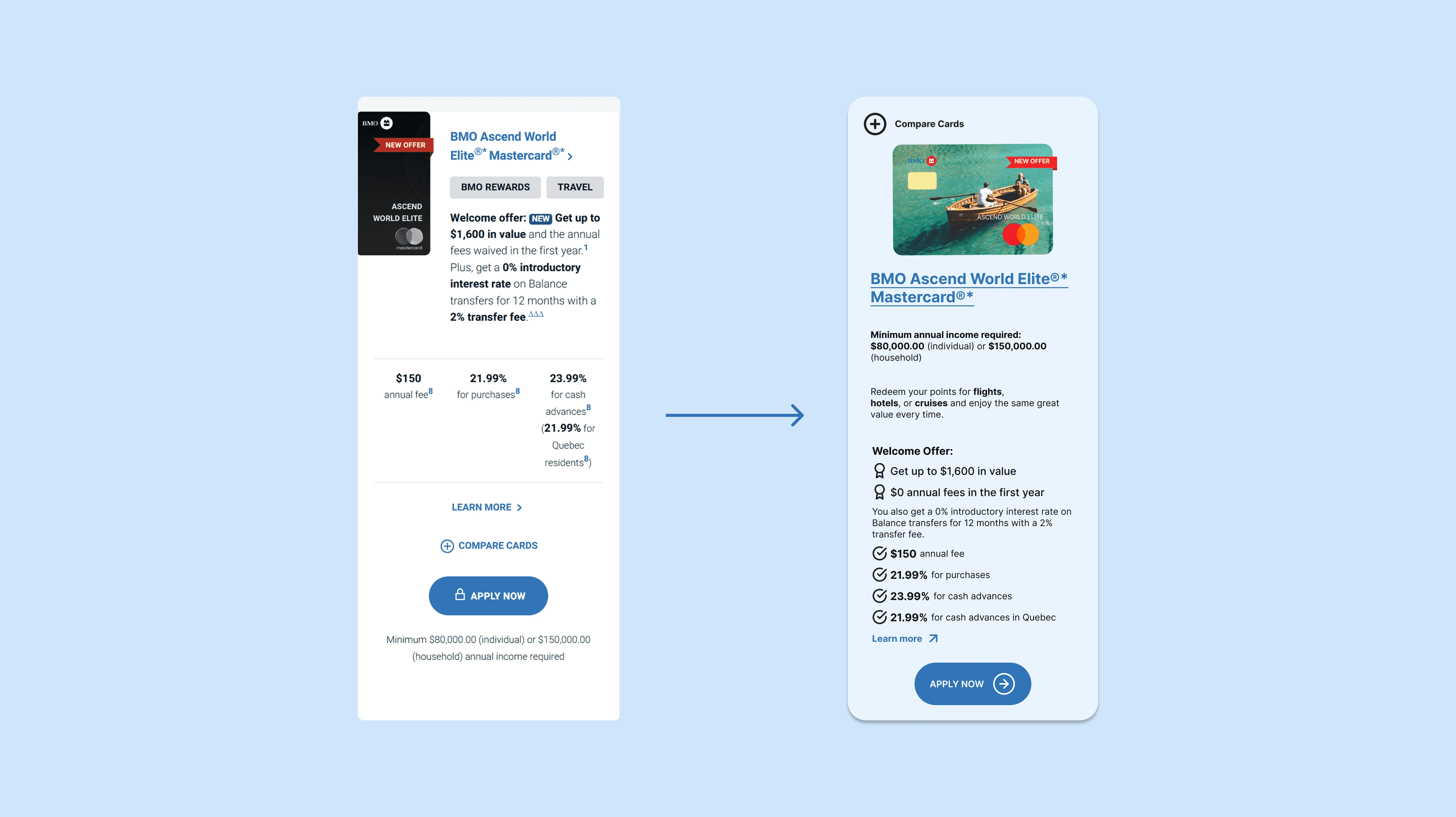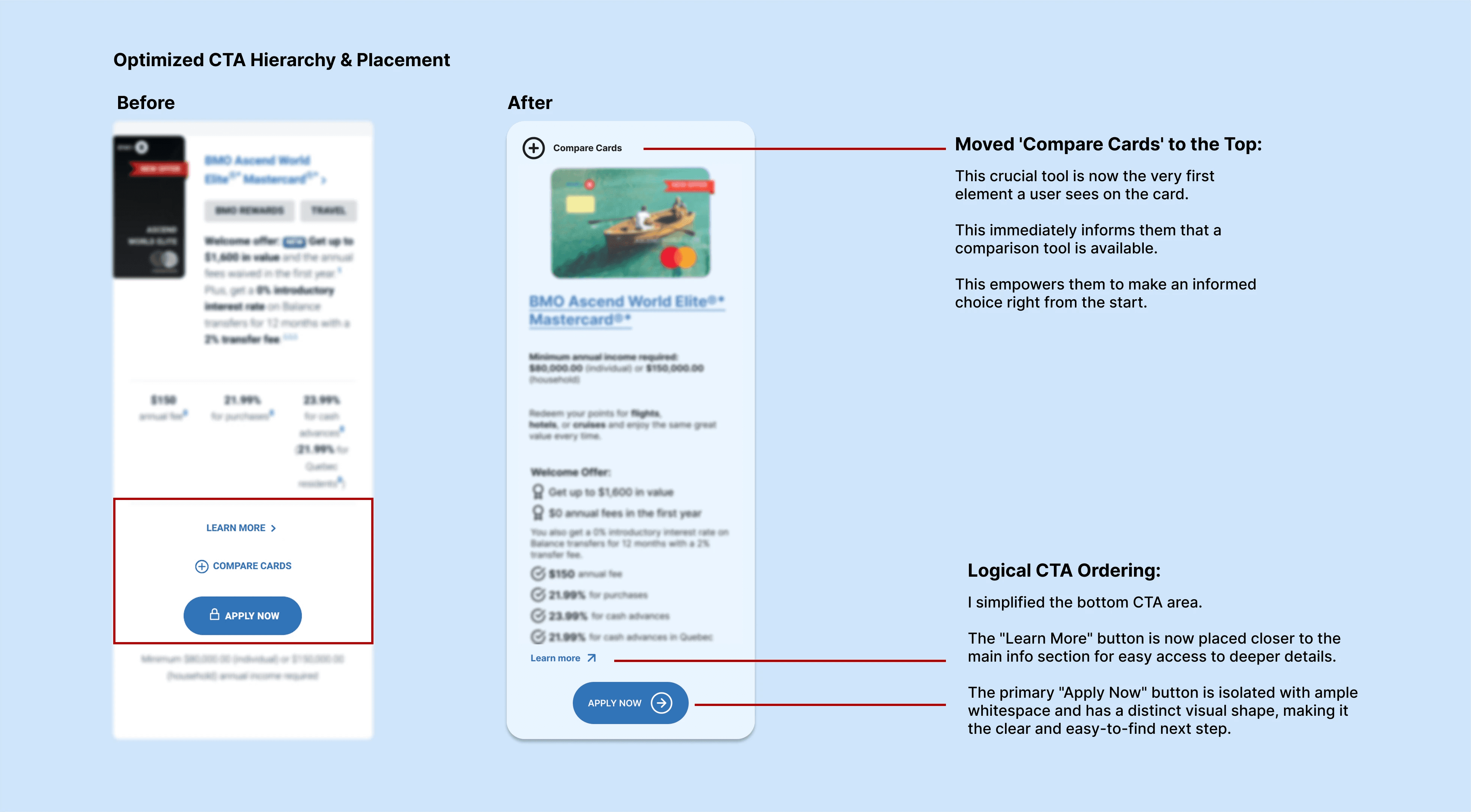 Optimizing BMO’s credit card selection by transforming a high-friction layout into a transparent, decision-first experience.
