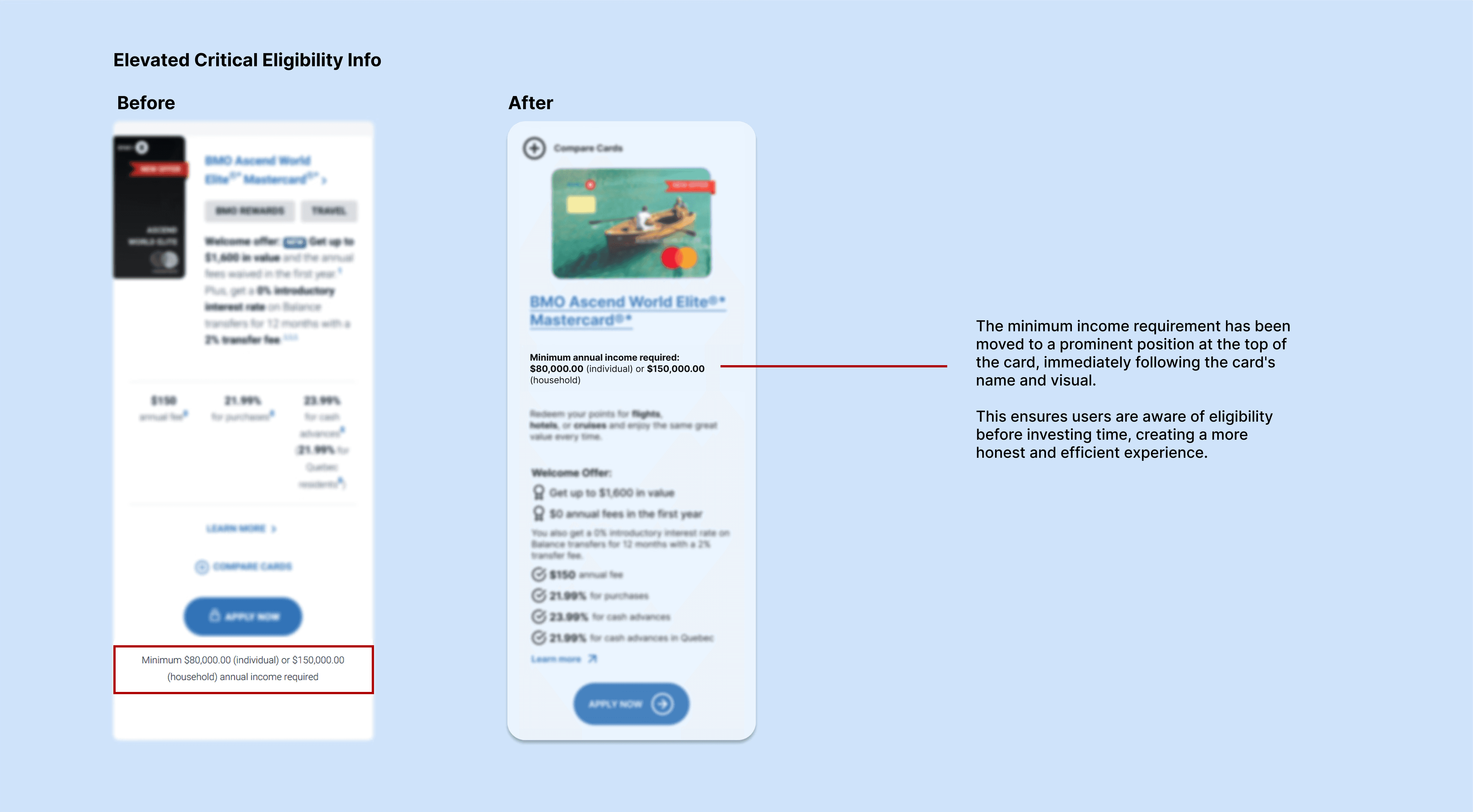 I identified the "must-know" info for users—specifically the Income Requirements—which was previously treated as an afterthought.